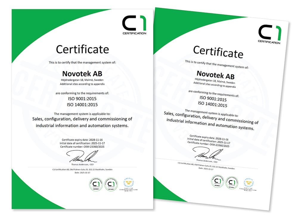 Novotek ISO certifications