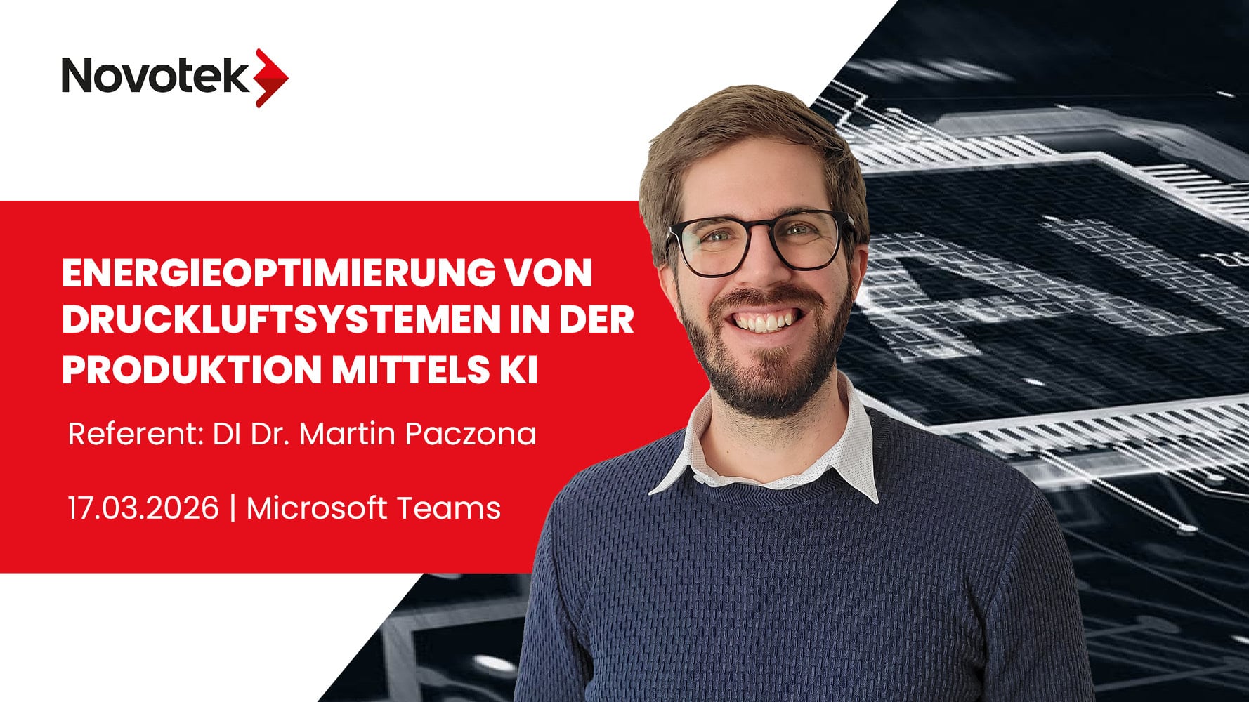 Druckluftsysteme in der Produktion tragen einen wesentlichen Teil zu den Energiekosten bei. Durch ein KI basiertes Monitoring und Steuerung der Druckluftversorgung sind Energiekosteneinsparungen in der Höhe von typischerweise 10-30% möglich. Wie dies funktioniert, erfahren Sie in unserem Webinar.
