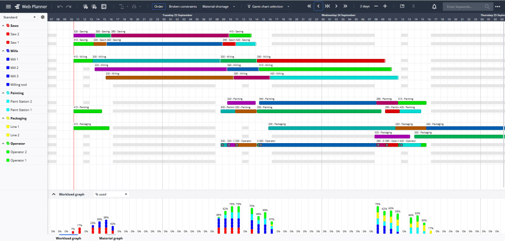 C’est faisable. Avec une planification des ressources en temps réel, vous gardez instantanément la vue d’ensemble sur l’avancement des ordres de fabrication et détectez les goulots d’étranglement à l’avance pour les éviter. Vous gardez ainsi la main sur vos opérations et profitez d’améliorations concrètes comme des délais de traversée plus courts, un débit plus élevé et un meilleur respect des engagements. Bref: votre production devient plus stable et plus efficace.