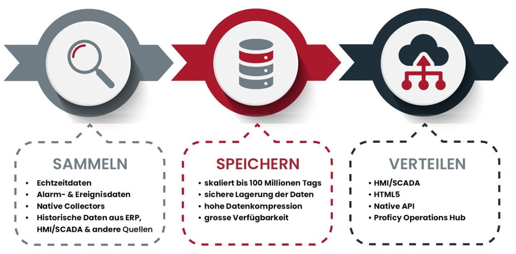 Zeitreihen-Datenbanken sind äusserst wertvolle Werkzeuge, die Ihr Unternehmen weiter voranbringt. So bietet der Proficy Historian eine Vielzahl an Vorteilen:
