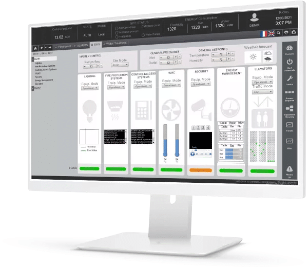 Proficy HMI/SCADA CIMPLICITY supports common industrial protocols such as OPC UA, Modbus, MQTT, and others. The software can also be integrated into ERP, MES, or Historian systems.